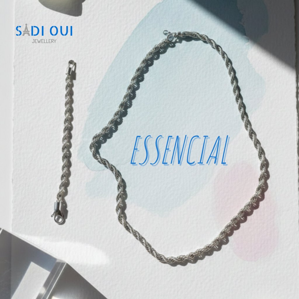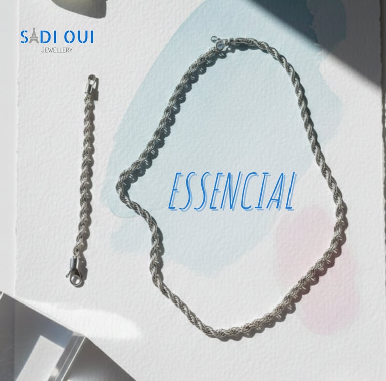 Corrente e pulseira prateadas, minimalistas e comfy — vibe discreta mas cheia de presença.