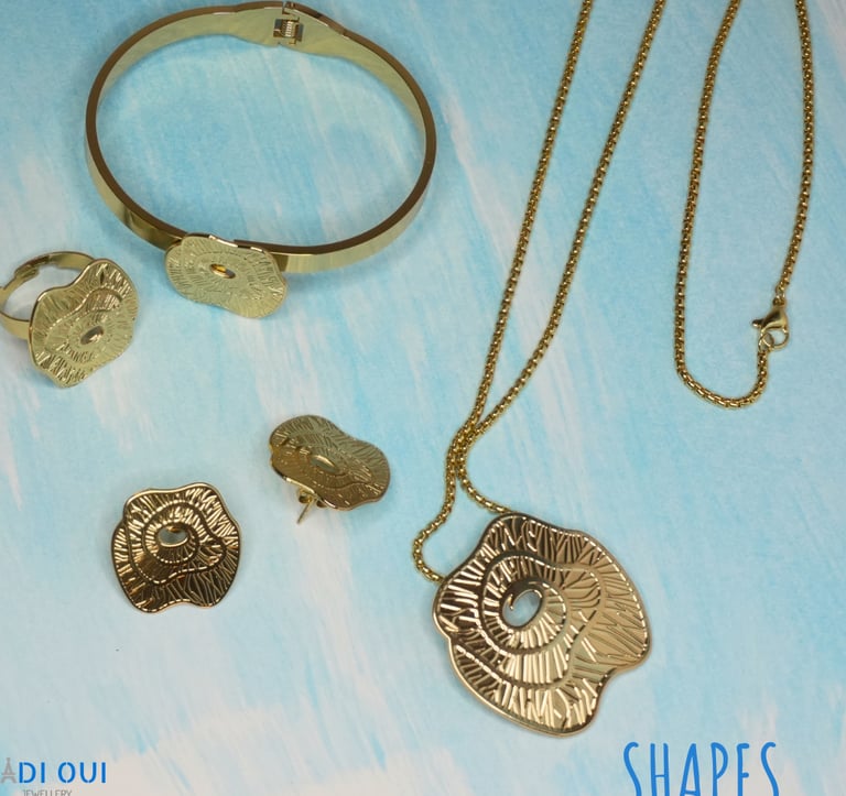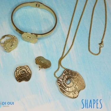 Aqui, as formas orgânicas e as texturas marcantes criam peças douradas com personalidade, feitas para quem não tem medo de arriscar e de ser original.